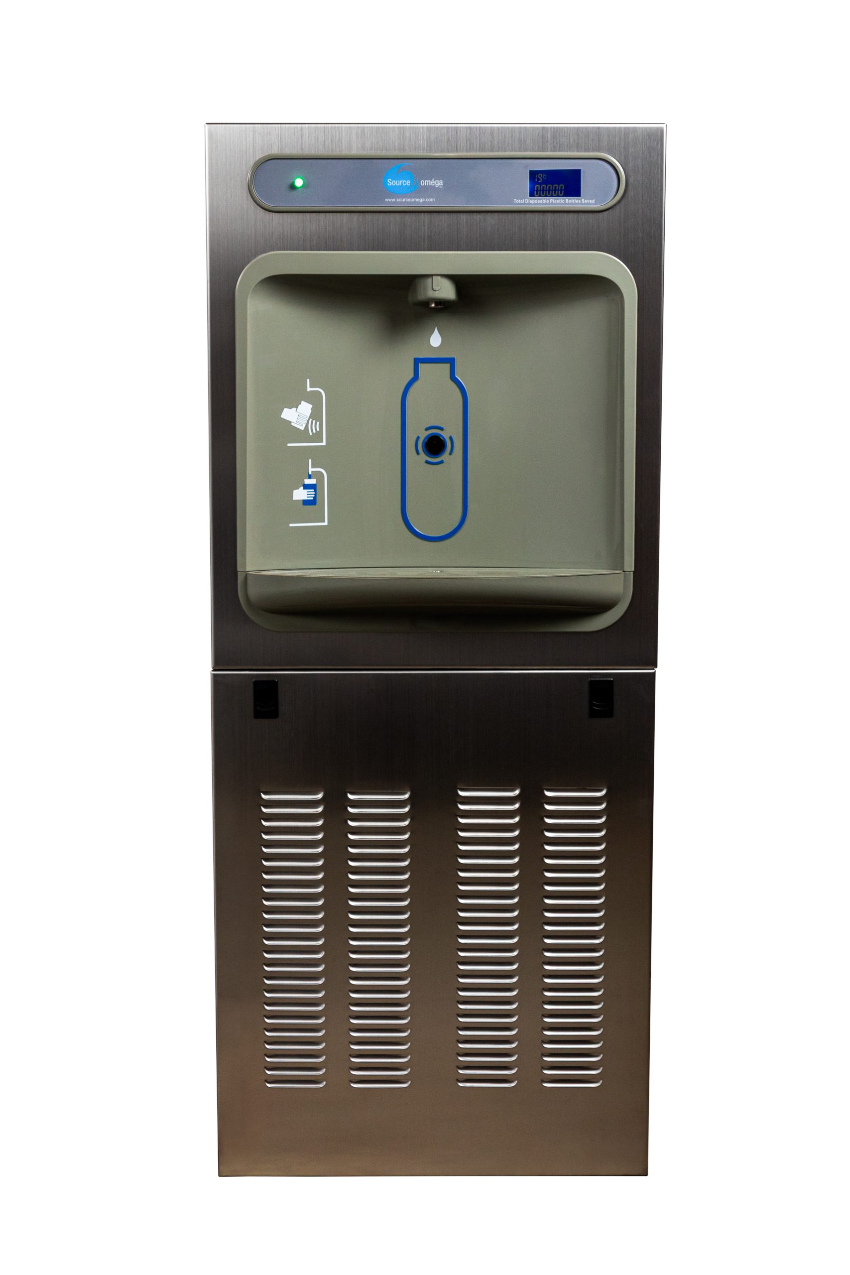 Station de remplisseur de bouteilles debout, de la marque Source Oméga inc. modèle SO-313BFEVG de couleur verte.